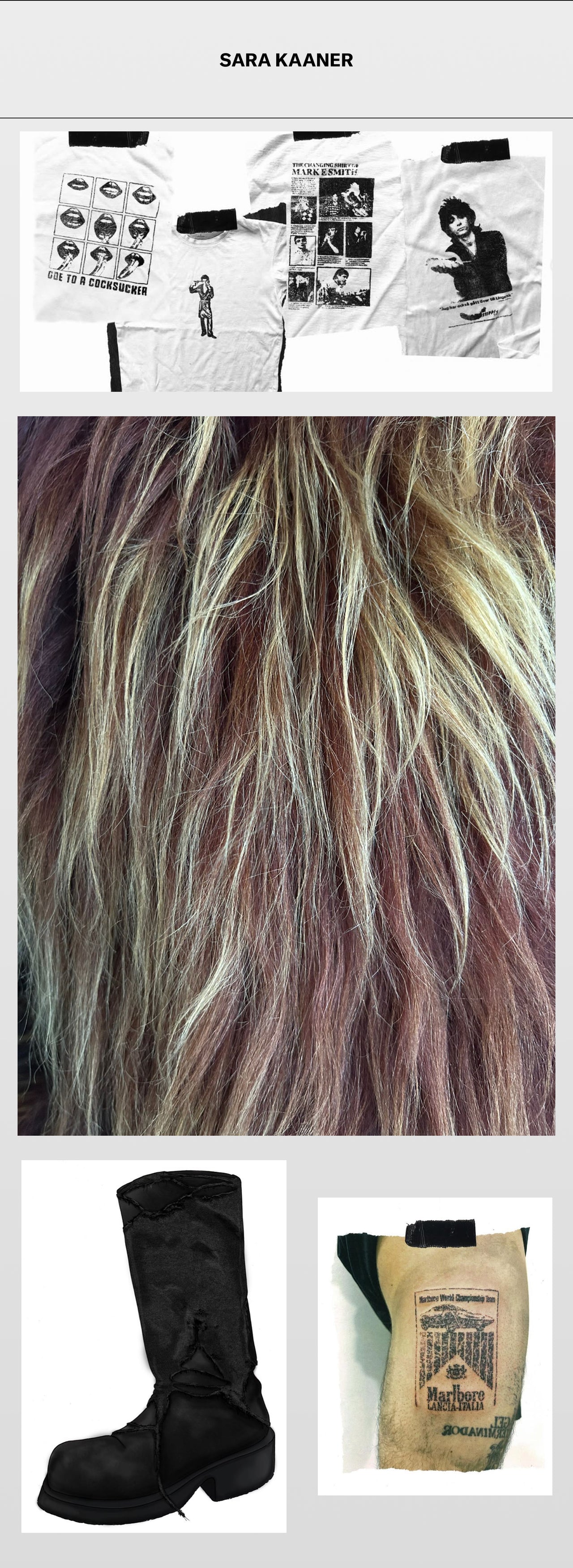 Sara Kaaner is a designer, artist, DJ, and tattooist with main focus on designing shoes and bags. Drawing from avant-garde art histories, underground music cultures, and experimental film, her work explores identity and performance by bringing together those different artistic disciplines. Her practice is grounded in upcycling and material experimentation, using deconstruction and reconstruction to rethink how objects function, appear, and communicate.
