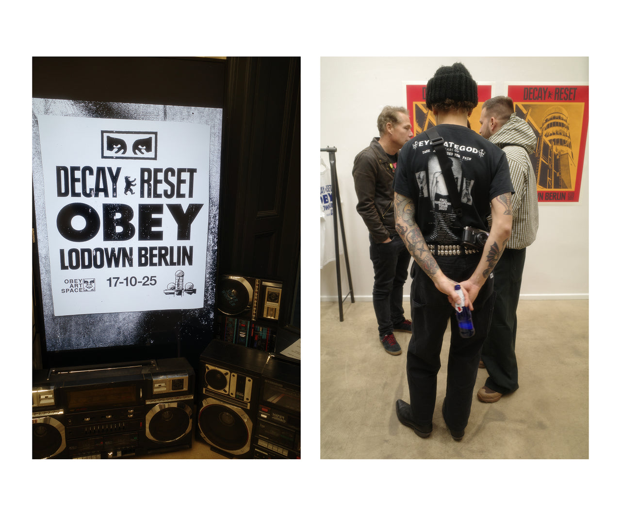 With a mild hangover but high spirits, we gathered again the next evening at the OBEY Art Space to celebrate a 30-year friendship between Shepard Fairey’s OBEY and Thomas Marecki’s Lodown. Their shared roots in skate, surf, and street culture, a mix of activism, DIY creativity, and freedom, shaped a generation and continue to inspire today. From Cold War West Berlin to 1990s Southern California, their work has always carried a restless urge to disrupt and connect.