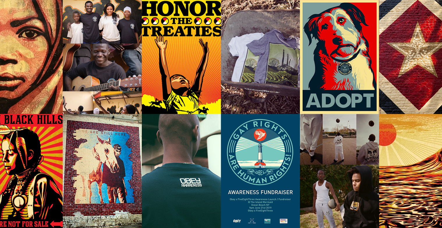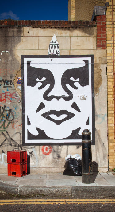 Explore the timelineOBEY Clothing emerges at the intersection of art, design, and cultural critique. Founded on the creative vision of artist Shepard Fairey, the brand traces its origins to a singular act of intervention: an absurdist sticker conceived in 1989 while Fairey was a student at the Rhode Island School of Design. What began as an experiment in subversion has since evolved into an expansive street art campaign and a widely exhibited body of fine art.