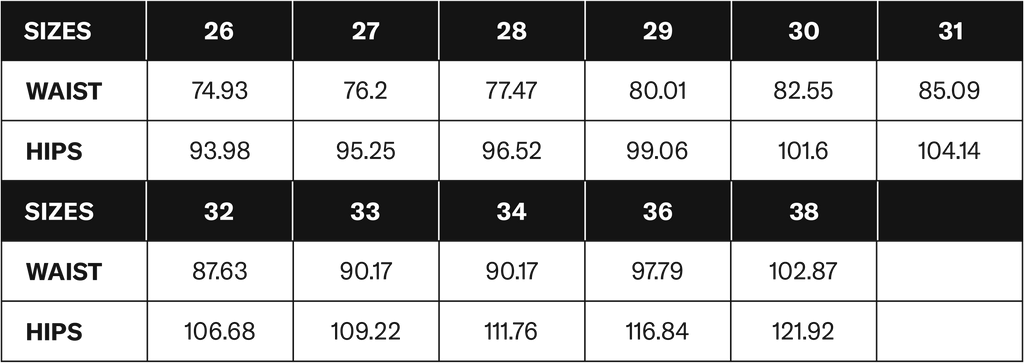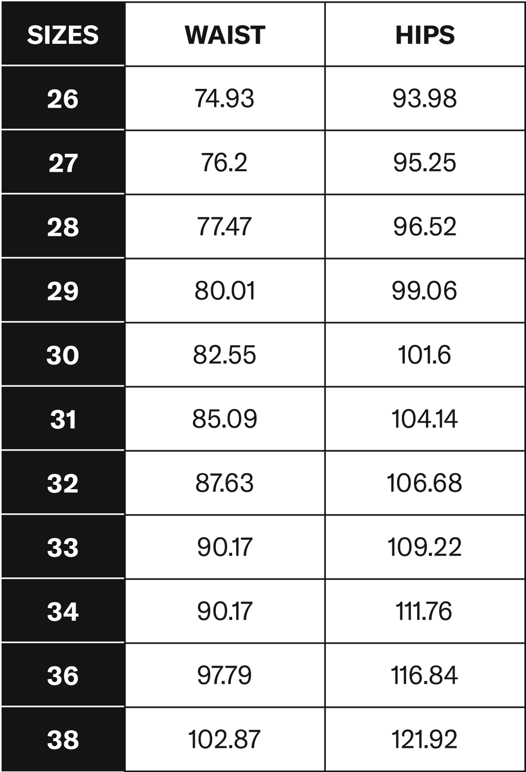 • LABEL AT WEARER’S RIGHT BACK POCKET